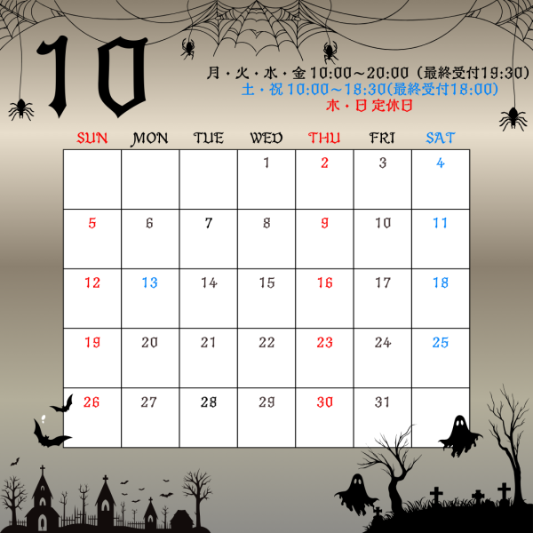 本日は10月営業日のおしらせになります。